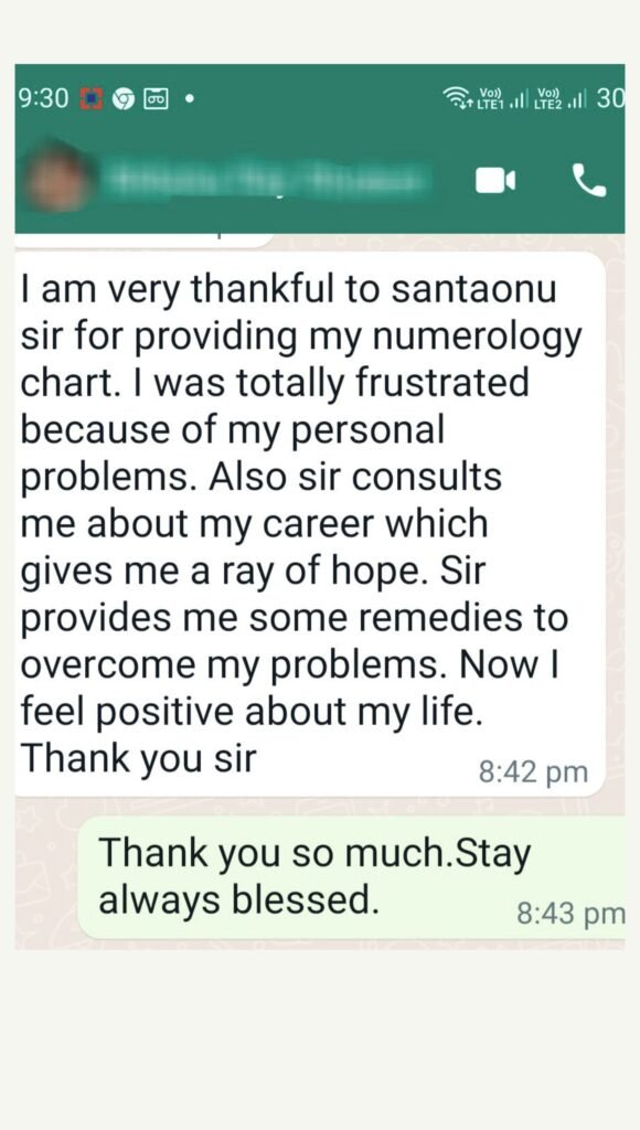 With 5 + years of proven expertise, I am Sanntanu Halder , a seasoned Numerologist, KP Astro Scholar,Certified Palmist,Pronology specialist, and Vastu expert. Trusted by nearly 1200+ clients globally, I am dedicated to providing insightful solutions that empower individuals to unlock their fullest potential and achieve profound transformation in all aspects of life.I am one of the top Numerologists and KP Astro Scholars and in India.